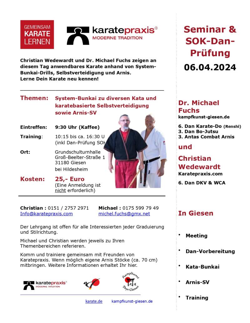 Karate und Arnis Lehrgang in Giesen am 15.03.25