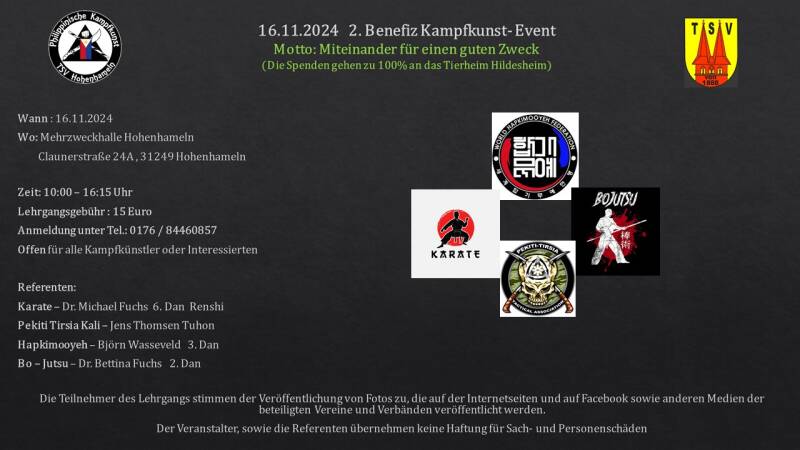 Am 16.11.24 fand der 2. Benefiz Kampfkunst Lehrgang